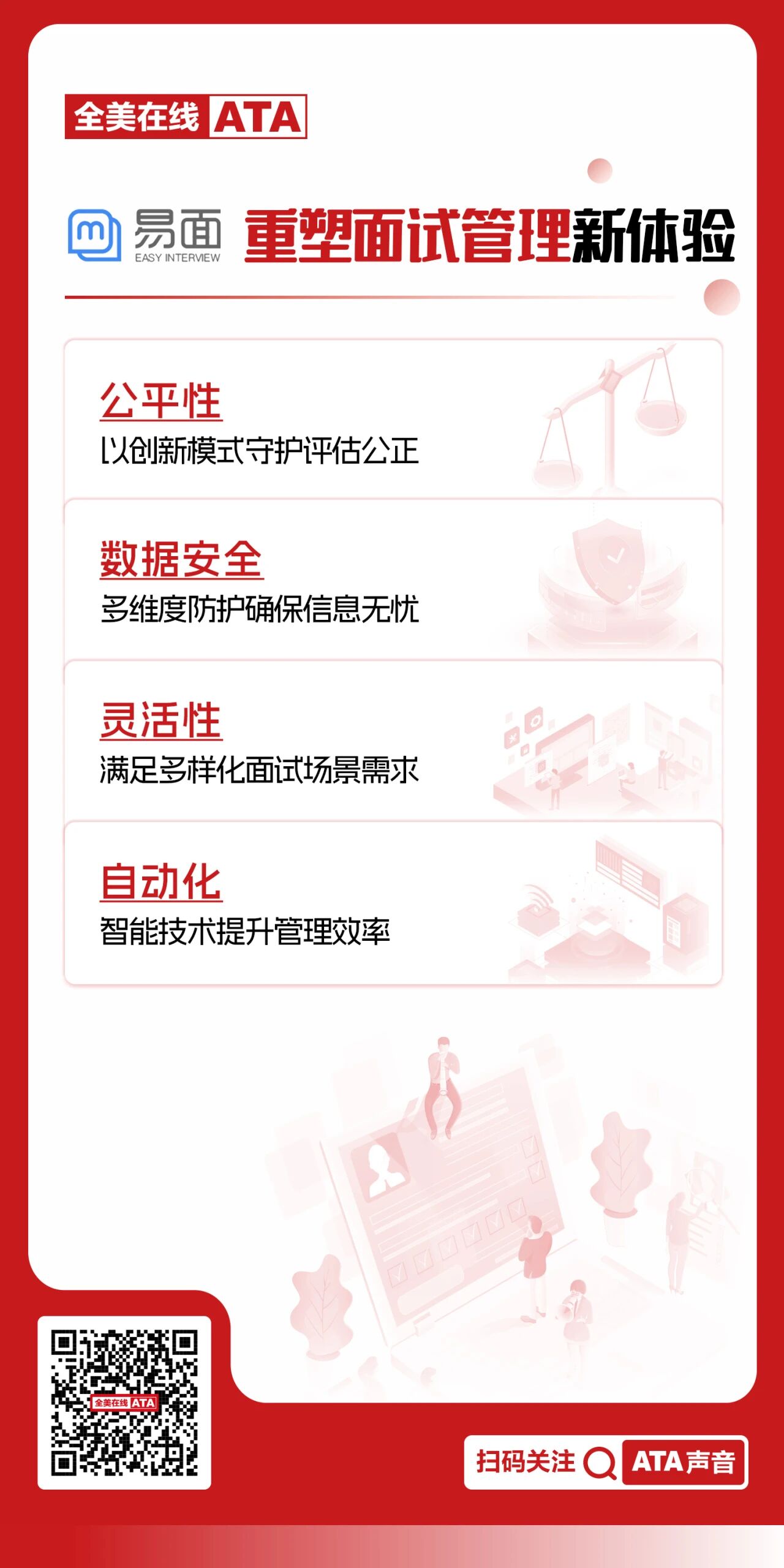 从万人校招的高效调度,到关键岗位的精准评估,再到跨地域招聘的成本控制,全美在线(ATA)“易面”系统以 “自动化流程、标准化评估、全数据管控” 为核心,直击企业招聘痛点;并非是简单的 “线上化工具”,而是重构招聘管理逻辑的数字化解决方案。