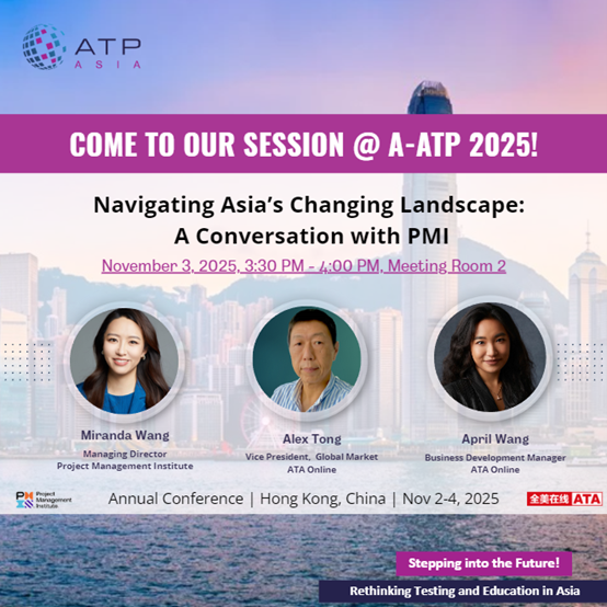 作为亚洲领先的考试技术与服务供应商,全美在线(ATA)将在会议期间带来主题为" Navigating Asia’s Changing Landscape: A Conversation with PMI(ATA-PMI高峰论坛:亚洲考试市场的变局与洞见)"的主场演讲,与业界共享其深耕亚洲市场的深刻洞察。