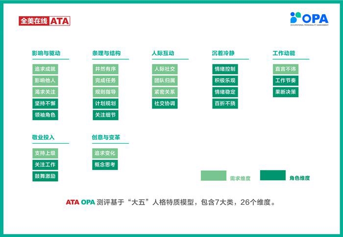1、核心工具: OPA 职业性格测评:基于“大五”人格模型,融合国际知名测评工具优势,含7大类26个评价维度、可测试18种胜任力模型,从通用就业素质、英语工作能力、个性与职场行为风格三大维度综合评价,生成岗位胜任力报告,清晰呈现候选人优劣势,直接支撑录用决策。