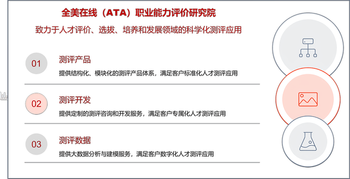全美在线(ATA)校招测评以通用就业能力为核心,构建起覆盖能力、素质、性格、专业的多维度测评体系,既包含标准化通用测评产品,也可根据企业岗位特性定制专属测评方案,为应届生选拔提供客观、科学的量化依据。