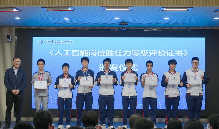 作为全省首批参与人工智能岗位胜任力测试的院校,广州市轻工技师学院交出了一份亮眼答卷。学院人工智能产业系陈文昀主任在致辞中介绍:学院正积极推动教学标准与企业用人需求的深度对接,首批学生已成功取得人工智能岗位胜任力的 L1-L3 等级证书,跨专业学生也在测评中表现优异。“学以致用” 不再是一句口号,而是可衡量、可验证的现实。这一实践,为 AI 时代院校人才培养提供了可复制的范本。