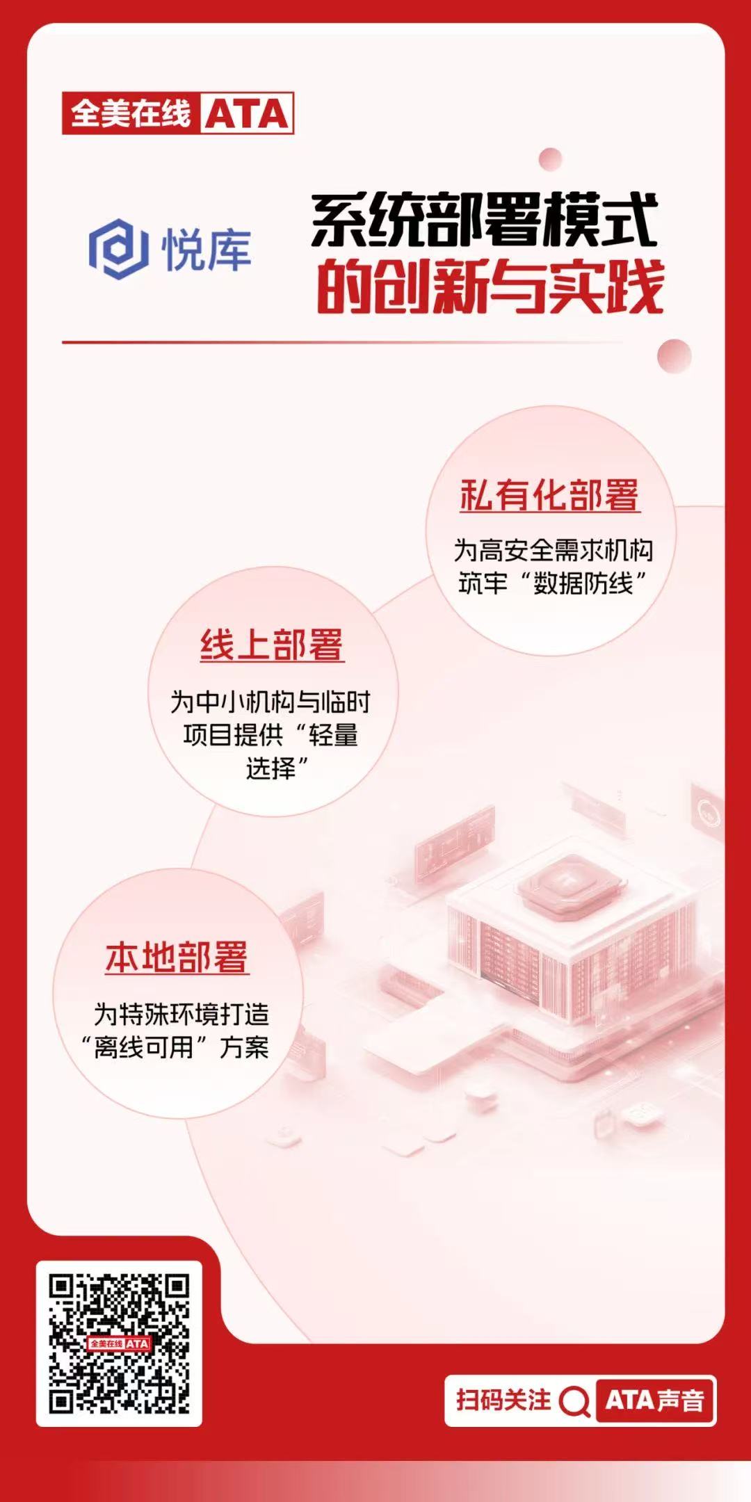 全美在线(ATA)“悦库”系统基于企业级架构设计,通过模块化与分层架构实现了部署模式的灵活切换,其三大部署方案各有侧重,精准覆盖不同场景需求。