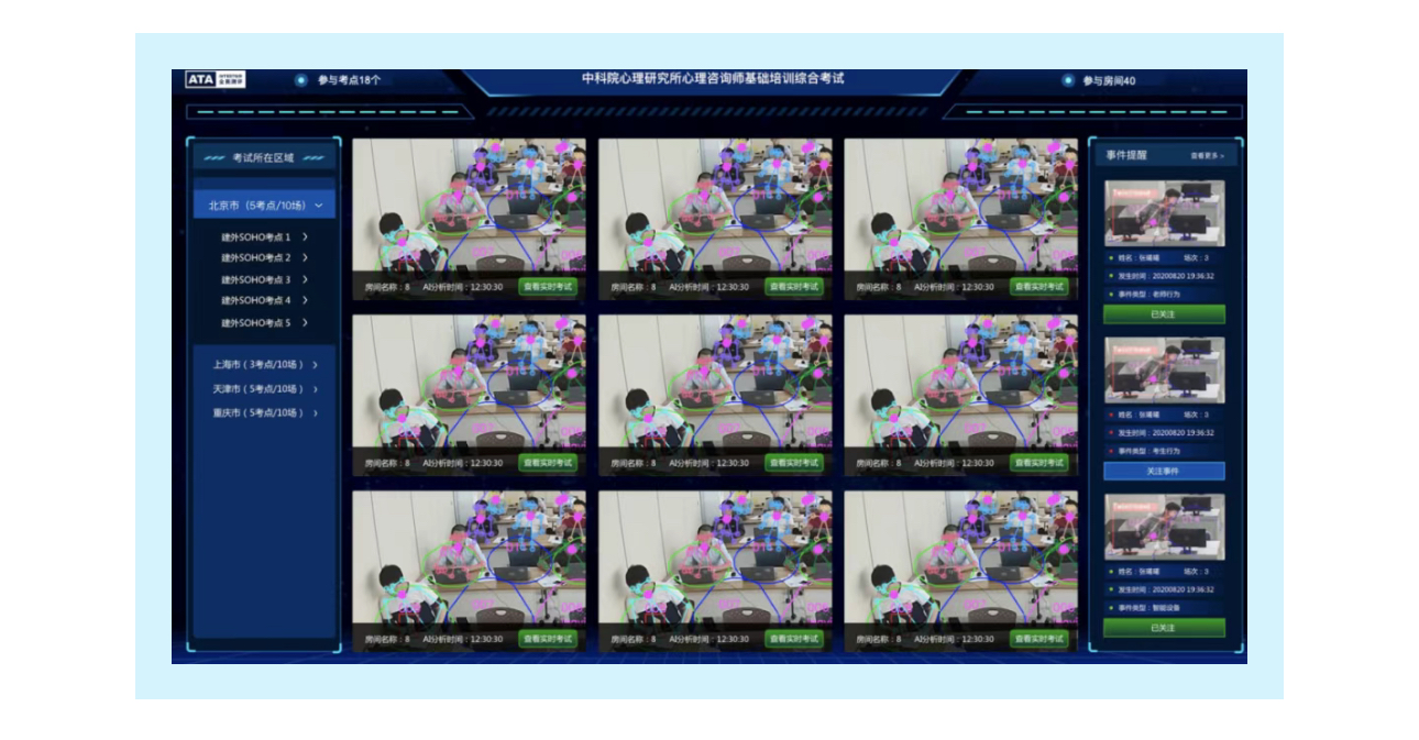 ATA智慧监考大脑已在多类核心场景落地,以实际成效树立行业标杆:郑州应急管理考试:精准识别考场异常、及时处置违规,大幅减轻人工压力,成为河南省智能监考推广标杆;山东智慧驾考:高效捕捉驾考理论考试作弊行为,遏制作弊现象,获公安部认可,成驾考智能监管示范;北京人事考试:为一级建造师等国家级考试提供服务,“巡考助手+AI 分析”实现全市考场视频统一管理,提升取证效率、保障考试权威;深圳健康管理师实操考场:创新“答题机+监考大脑”模式,全记录实操过程、支持云端打分,优化体验且强化公平性;校园常态化测验:适配中小学期中/期末、高校四六级等场景,无需增配监考人员,自动记录异常、生成考后报告,助力学校优化考场管理。