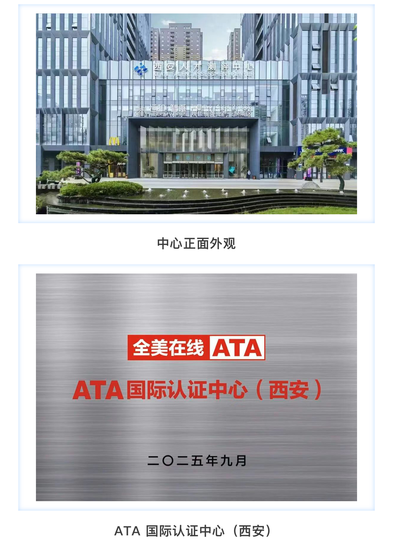 西安人才测评中心暨 ATA 国际认证中心由西安人才集团与全美在线(ATA)联合打造,依托西安人才集团的资源整合能力及全美在线(ATA)在考试服务领域的技术能力与优势,面向西部地区承接各类考试、测评、培训、及定向就业培养等服务;致力于构建模式创新、设施完善、服务全面、管理高效的市场化、智能化人才考试测评中心。
